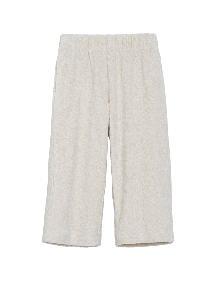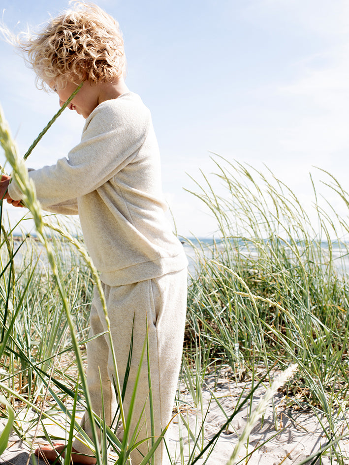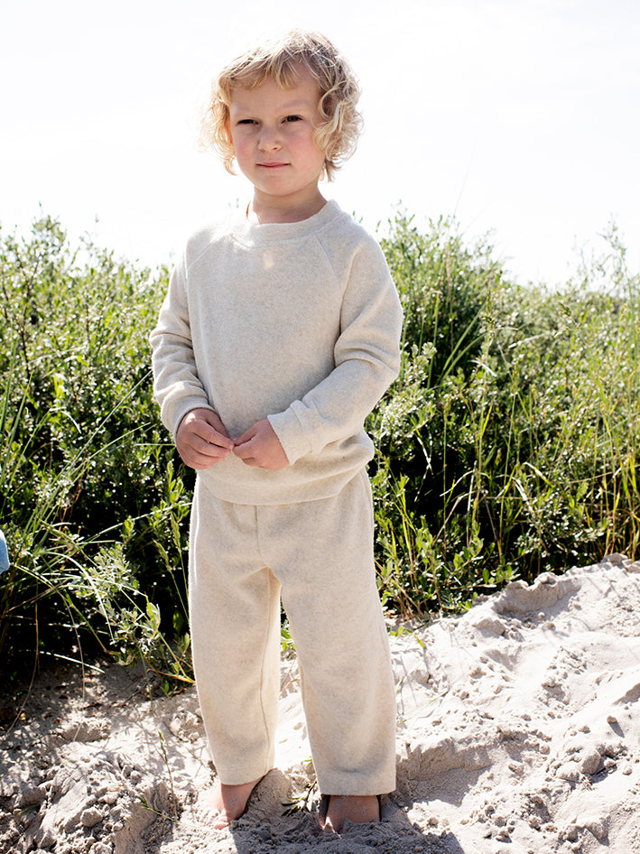 Soft Terry Pants by Serendipity in Shell melange colour. This style has elastic at the waist and ankles, and practical hidden pockets in the side seams. It is made of 100% organic cotton and all steps of the production are GOTS certified.