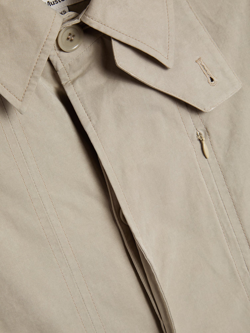 Raglan sleeve trench coat made from cotton blend with soft peached finish.