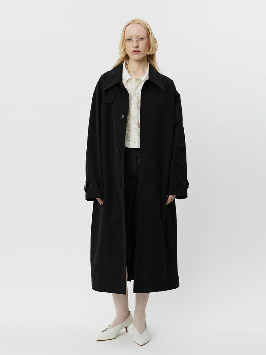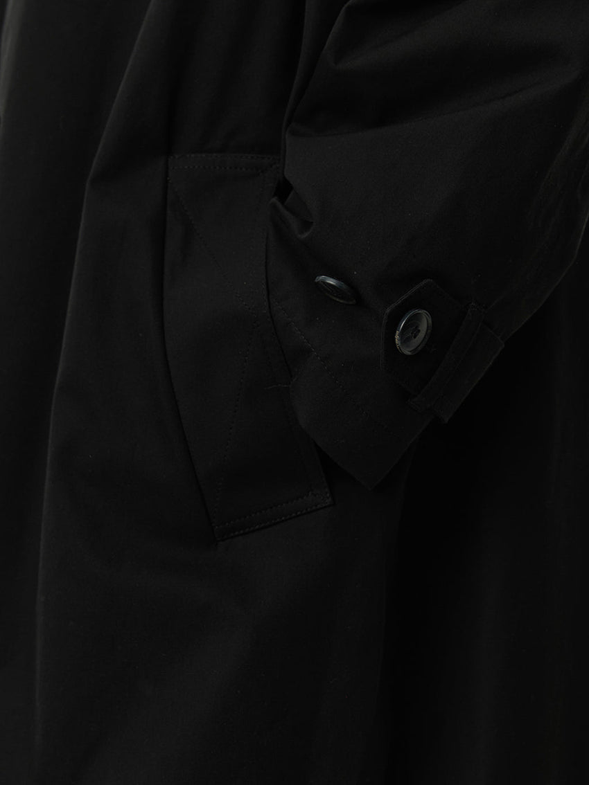 Cut from a coated water resistant Italian deadstock cotton in black.
