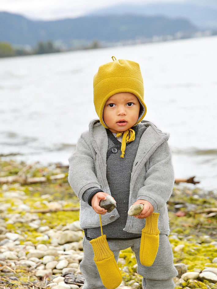 Soft and warm Walk Gloves by Disana for cold and windy days made of boiled organic wool. A cord that you can put through the jacket ensures that the mittens will not get lost. No more cold hands when playing outside in winter! The mittens in size 6-12M are without thumb, sizes 1-2Y & 2-4Y are with thumb.