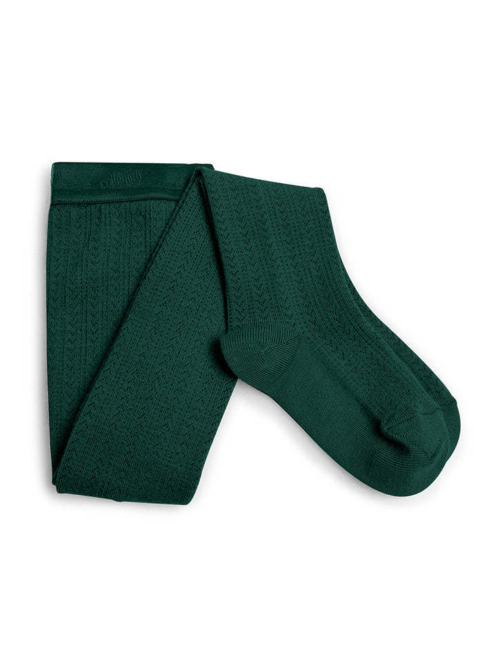 Angélique - Merino Wool and openwork knit Tights in Strong Green from Collégien Fall for these tights with openwork mesh in extra fine 100% merino wool, "mulesing free", which respects the animal. Composition: 73% Wool - 25% Polyamide - 2% Elastane Lycra®