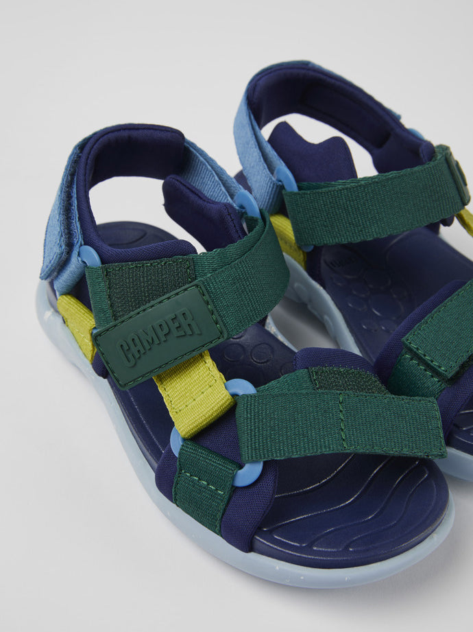 Children's Multicolored textile Sandal by Camper Kids with a removable OrthoLite® Recycled™ footbed and rubber outsole (20% recycled content). Engineered for both land and water activities, the Wous is crafted from protective leather and features a unique design for any summer venture.