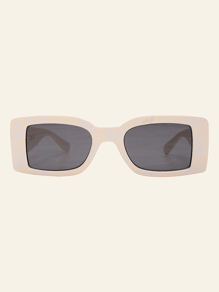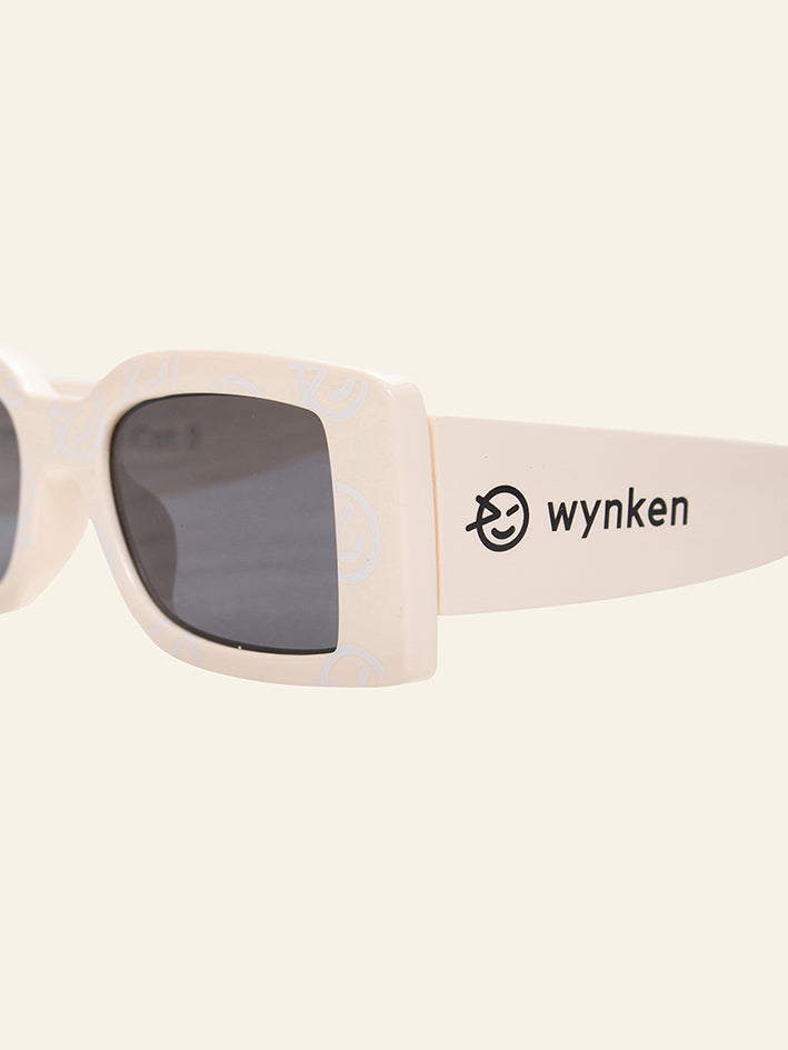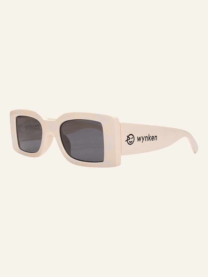 Chunky square framed Sunglasses by Wynken / Tide White frame / comes with cleaning cloth & sunglass case /Lenses 100% recycled, made from water bottles & caps, food containers / BPA FREE and fully recyclable at end of life / Frames TritanTM Renew with 50% recycled material