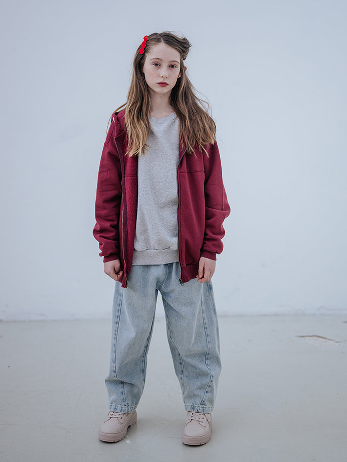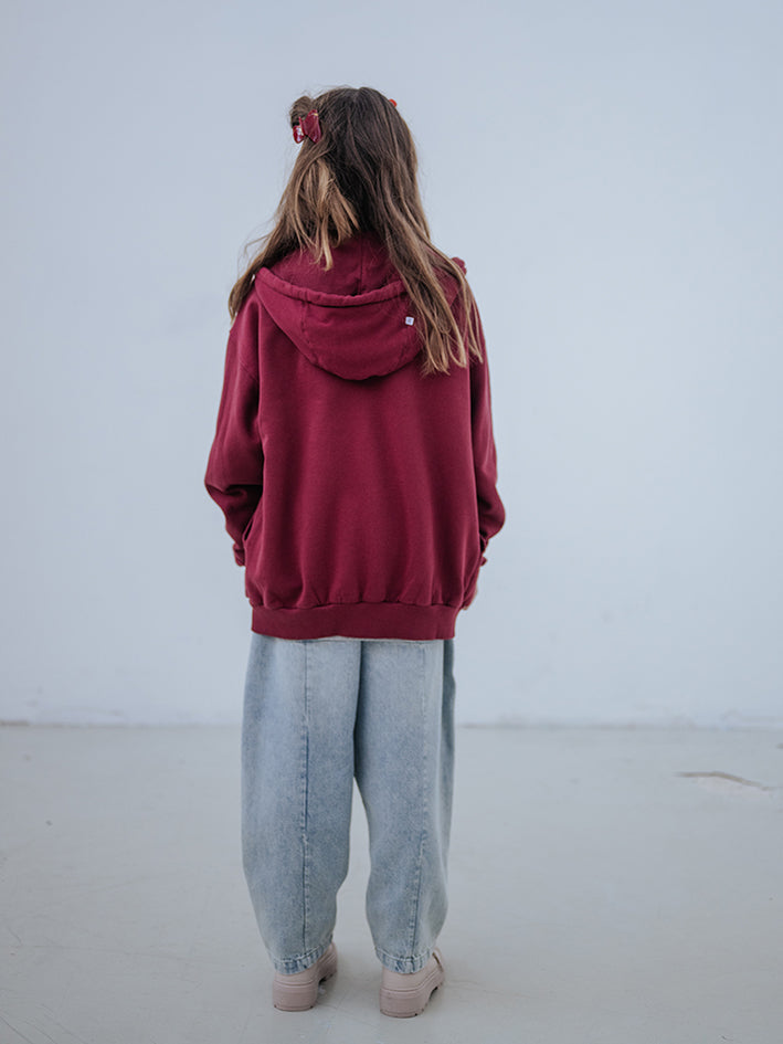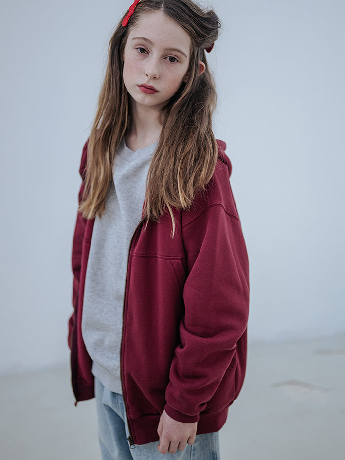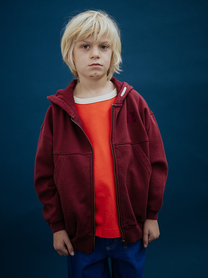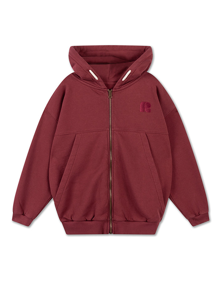 The Repose Ams Zip Hoodie Royal Burgundy is crafted from soft organic cotton fleece and features a full-zip front closure with adjustable drawstring hood.